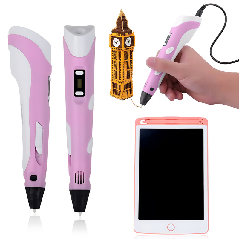 3D-ручка 6 поколения 3DPen-6 с LCD + графический планшет 8.5", набор для 3D-рисования, 100 м PLA, регулировка температуры Розовый