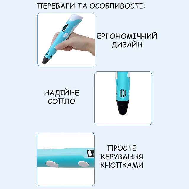 - 🪶 Лёгкая 3D-ручка — всего 64 г, удобно даже для детской руки