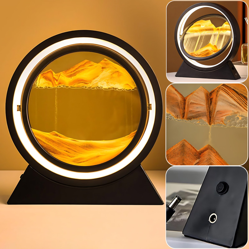 Ты переворачиваешь или поворачиваешь рамку — и внутри медленно рождаются пустыни и песочные водопады.