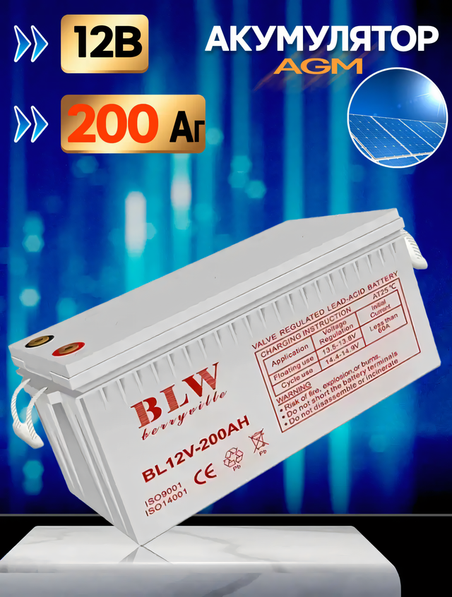 Аккумуляторная батарея BATTERY 12V 200A BLW — это универсальная AGM батарея, предназначенная для различных применений. Она работает в циклическом режиме, герметична и может функционировать в любом положении. Батарея безопасна в эксплуатации и обладает низким уровнем саморазряда. Она идеально подходит для источников резервного или бесперебойного питания (UPS), систем телекоммуникаций и связи, портативного измерительного оборудования, а также может использоваться в буферном и циклическом режимах.