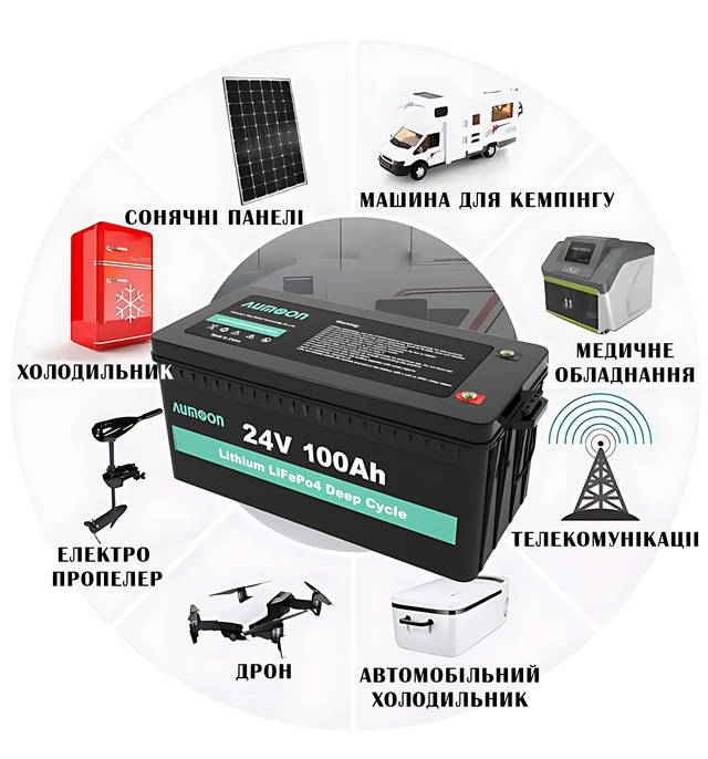 Аккумулятор ENERSUN LiFePO4 25,6В 100Ач 2,56кВт с Bluetooth і BMS для ДБЖ AUMOON