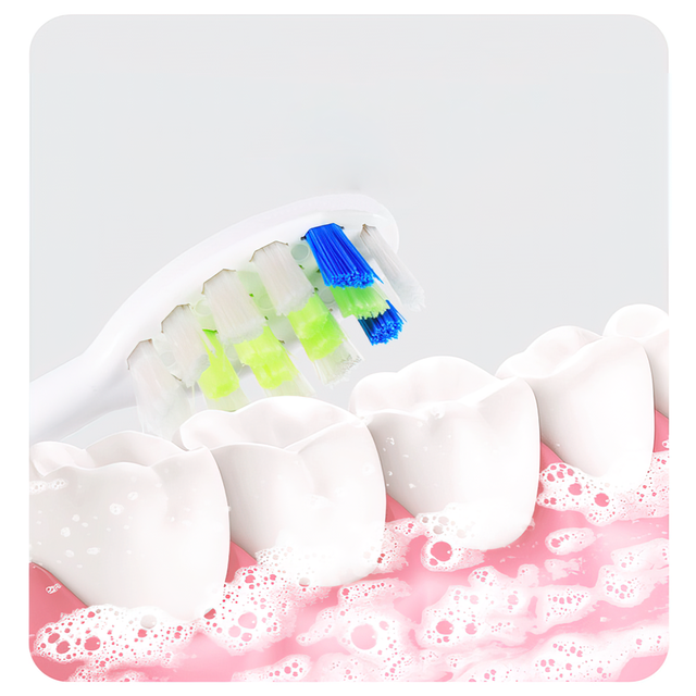 - Интенсивные вибрации и пульсация щетинок для глубокого удаления загрязнений с поверхности зубов;