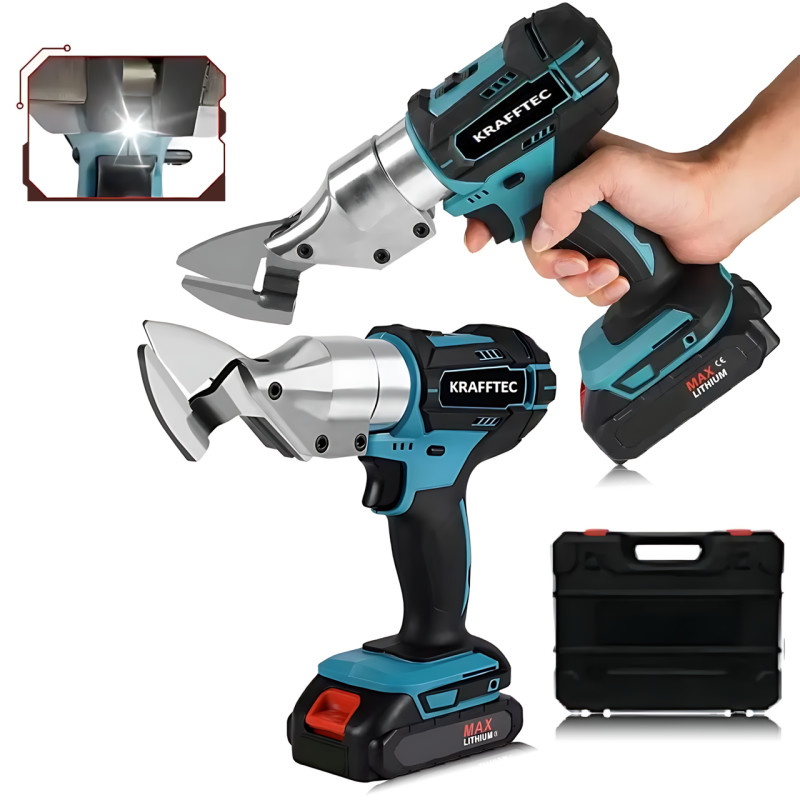 Аккумуляторные ножницы по металлу Krafftec DJS130RFE 36V 5Ач, 2 АКБ, кейс, поворотная головка 360°, до 1.8 мм