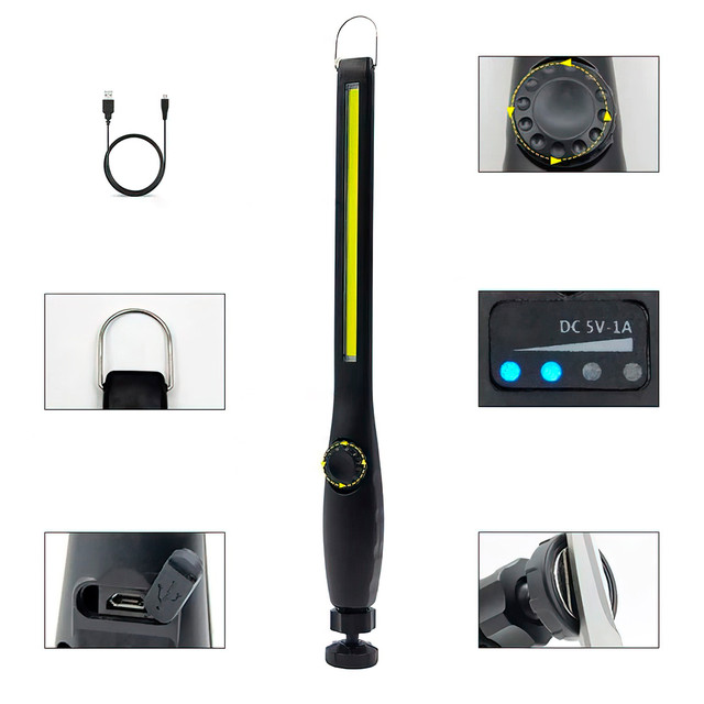 Аккумуляторный фонарь BL-821 COB - это удобное устройство применимое как в быту, на выездах, кемпингах, так и для работы механиков, на СТО. Девайс оснащен магнитной подвеской и поворотным на 360 градусов шарнирным соединениям, что позволит закрепить его на любой металлической поверхности и настроить свет под Ваши потребности. Работает на аккумуляторе на 3200 мА/ч и заряжается через USB кабель, как от сети 220 В, так и от бортовой сети автомобиля. Имеет 2 режима работы: сфокусированный фронтальный луч и широкоугольное рассеянное освещение.