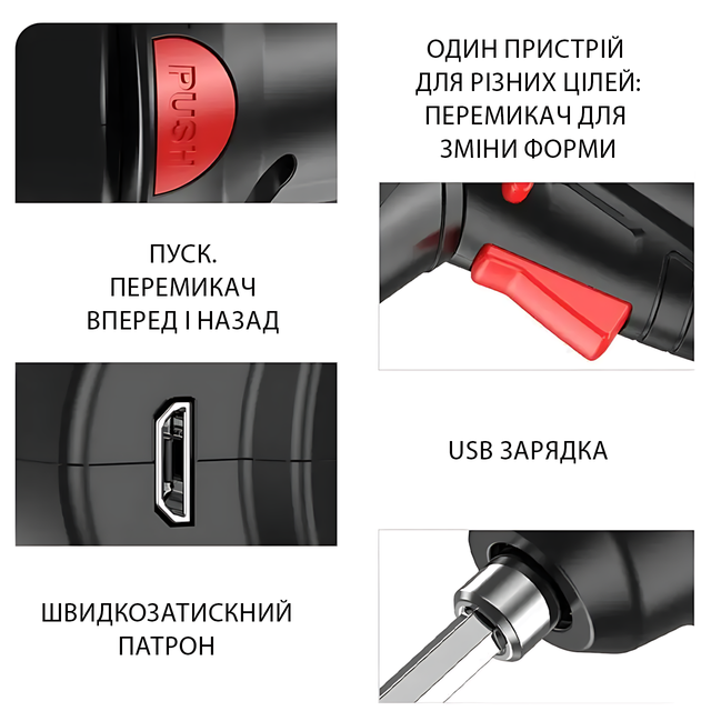 Аккумуляторный шуруповерт 3.6V 1800 мАч USB, 47-в-1: реверс, LED-подсветка, кейс, насадки, отвертка-дрель