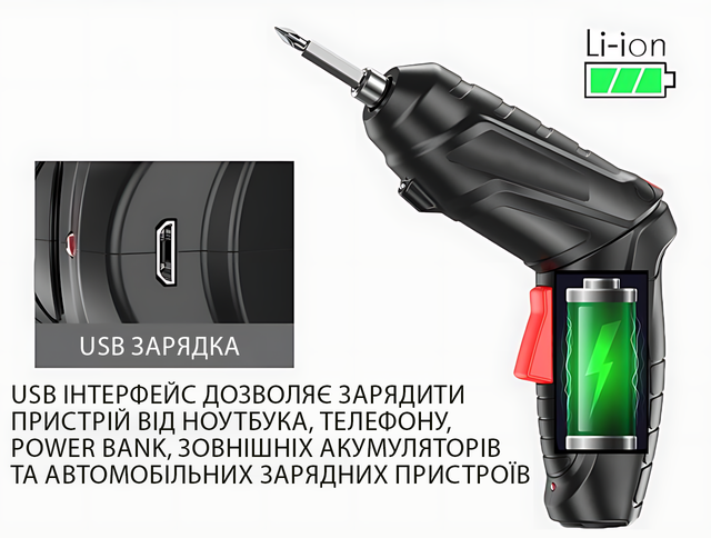 - ???? Li-Ion аккумулятор — лёгкий, без "эффекта памяти", заряжается быстро