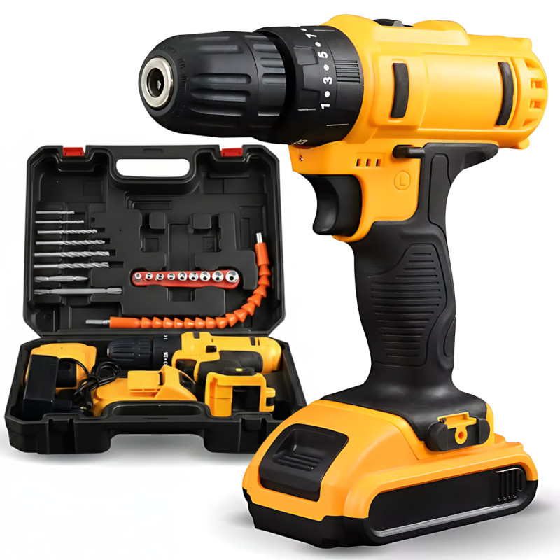 Аккумуляторный шуруповёрт 24V с 2 аккумуляторами, кейс, набор бит и сверл, гибкий удлинитель, реверс, подсветка, электрическая дрель-шуруповёрт