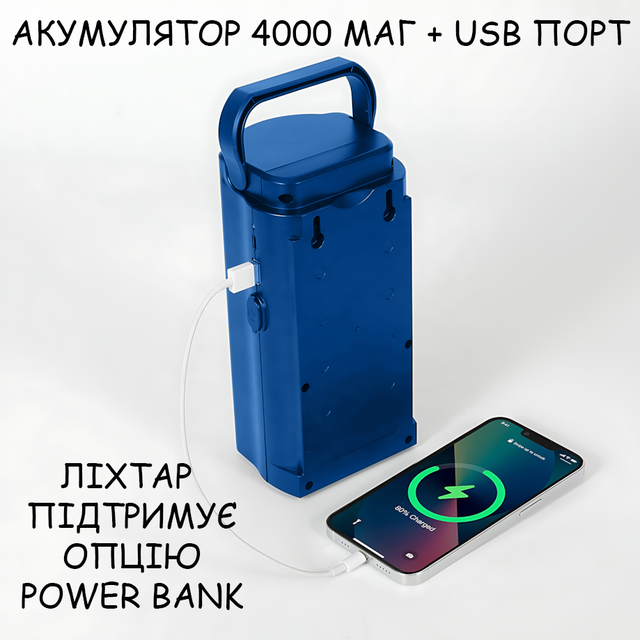Аккумуляторный светодиодный фонарь powerbank Astra Silver RD-24, 24 LED, 80 Вт, 6V/4000 mAh, USB, SOLAR, 220В, синий