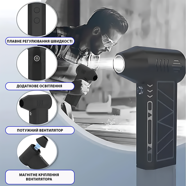 Аккумуляторный турбо-вентилятор Mini Jet Fan ZY7400-SE-PRO – 5000 мАч, 39,5 м/с, магнитная насадка, USB
