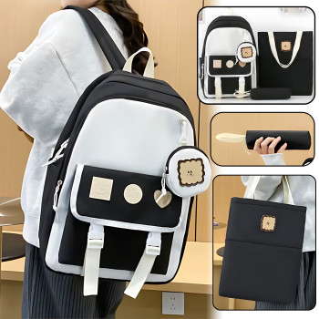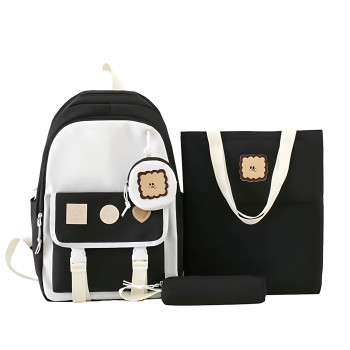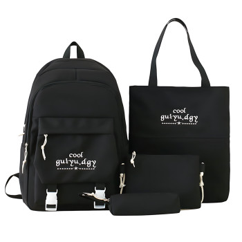 Школьный рюкзак в наборе 4в1 MFG-5505 Cool Guiyu.dgy — рюкзак, шоппер, пенал, клатч, чёрный, стильны..