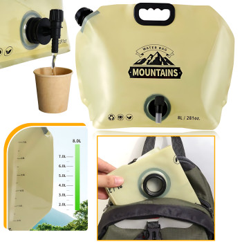 Сумка для воды складная AND-1, 8 л, с краном, мерной шкалой, PE+PA+PET, 42.5×31.5 см, до 60 °C