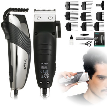 Машинка для стрижки волос VGR V-121 с керамическими лезвиями — 8 насадок, 10 Вт, профессиональная, с..