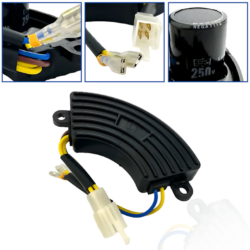 AVR регулятор напряжения генератора 168F 1-3 кВт полумесяц 250V 220мкФ предназначен для автоматической стабилизации выходного напряжения генераторов мощностью 1-3 кВт. Он обеспечивает защиту от перенапряжения и поддерживает стабильное напряжение на уровне 250V, что необходимо для безопасной и бесперебойной работы подключенных приборов. Форма устройства – полумесяц, что упрощает его установку и интеграцию в генераторы. Конденсатор ёмкостью 220 мкФ помогает снижать пульсации напряжения и улучшает эффективность работы. Подходит для бензиновых генераторов с двигателями 168F. AVR предотвращает повреждение оборудования от скачков напряжения и продлевает срок службы генератора. Легко монтируется и совместим с большинством генераторов данного диапазона мощности.
