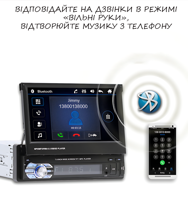 Авто магнитола SWM 9601-9612G с выдвижным экраном 7'', Bluetooth Car Stereo, 1DIN, с камерой заднего вида