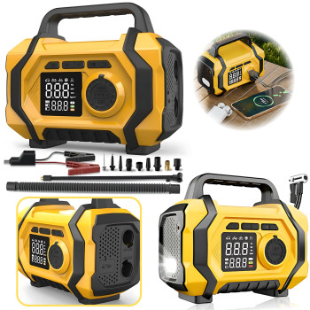 Портативный компрессор-насос ATJ-201 (Жёлтый, 150 PSI, 25000 мАч, Type-C 5V/1A) — Беспроводной мини-..