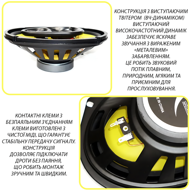 - ✅ Формат 6×9" — более плотный и объёмный звук, чем у круглых динамиков