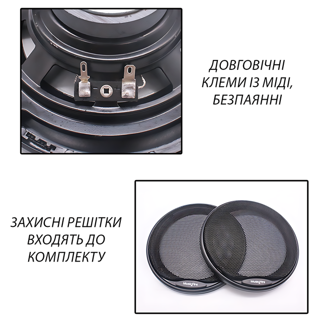 - ✅ Диффузор из полипропилена с арамидными волокнами — меньше искажений