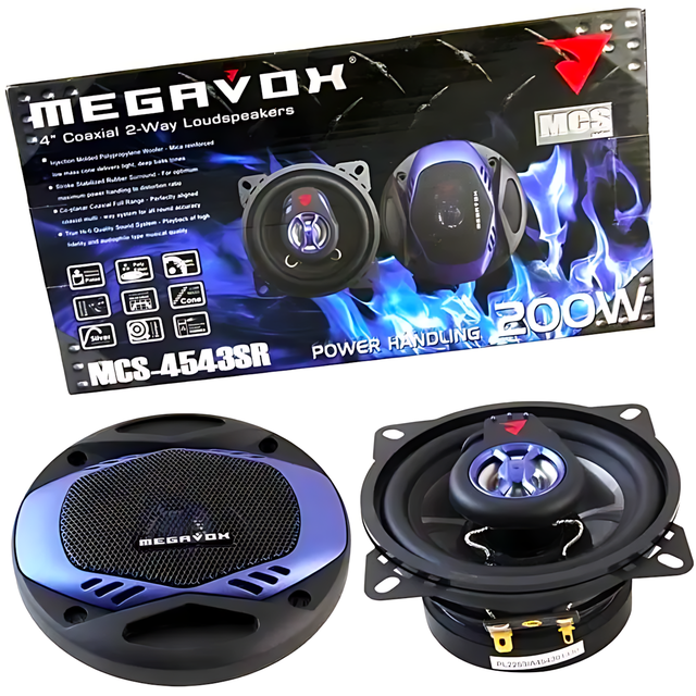 Автомобильные динамики Megavox MCS-4543SR 10 см, двухполосные коаксиальные динамики 4" 200 Вт