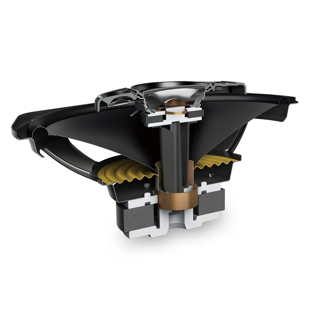 - Диффузорный НЧ-динамик с композитным изоляционным материалом из слюдяного арамидного волокна и углеродного волокна;
