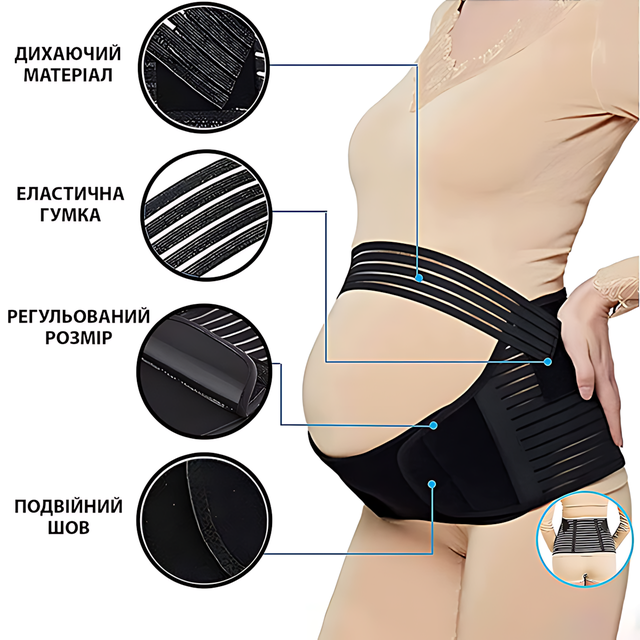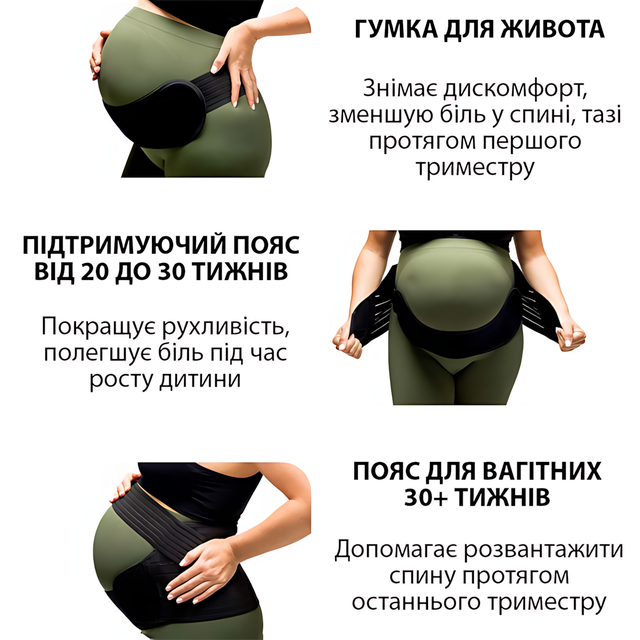 - Основные функции: Поддержка живота, спины, снятие нагрузки;