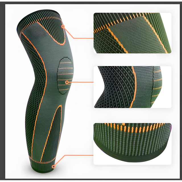 Используемая технология вязания обеспечивает хорошую компрессию коленного сустава, что помогает уменьшить боль в мышцах и суставах, а также предотвращает травмы. Материалы бандажа позволяют коже дышать, обеспечивая комфорт при длительном ношении.