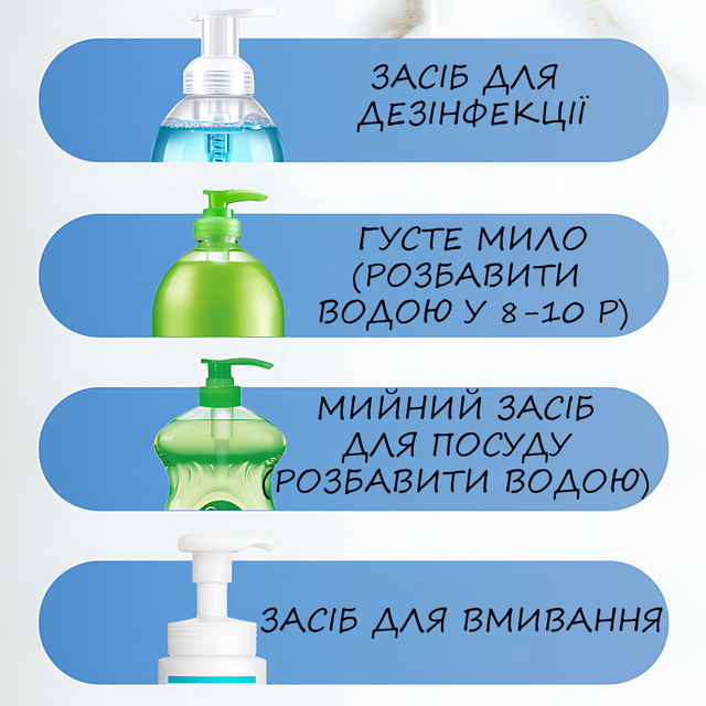 - Универсальное применение: Подходит для жидкого мыла, средств для умывания, шампуней и антисептиков для рук.