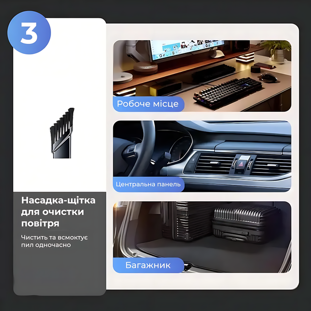 - Дополнительные аксессуары: В комплект входят насадки для разных задач, включая щетки и трубки для выдувания.
