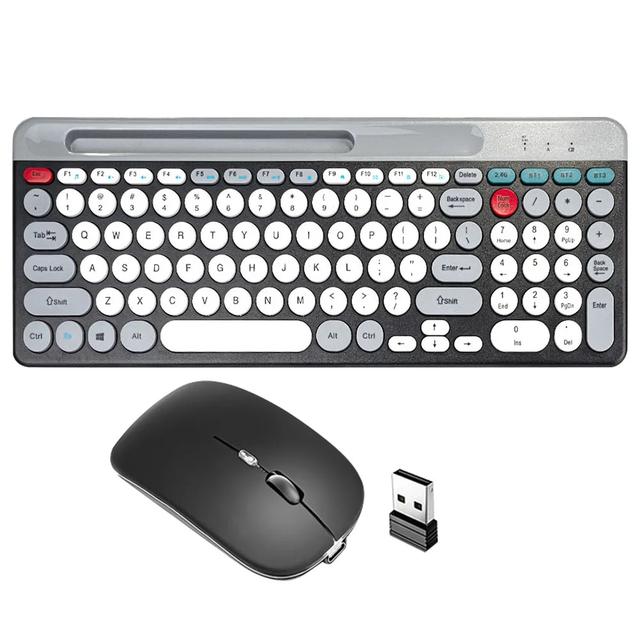Комплект клавиатуры и мыши с поддержкой 2,4 ГГц и совместимый с Bluetooth Dual Mode с держателем для телефона. Беспроводная клавиатура и мышь. Эргономичная беспроводная многозадачная клавиатура и мышь. Подходит для зарядки Mac/iOS/Android/Win7.