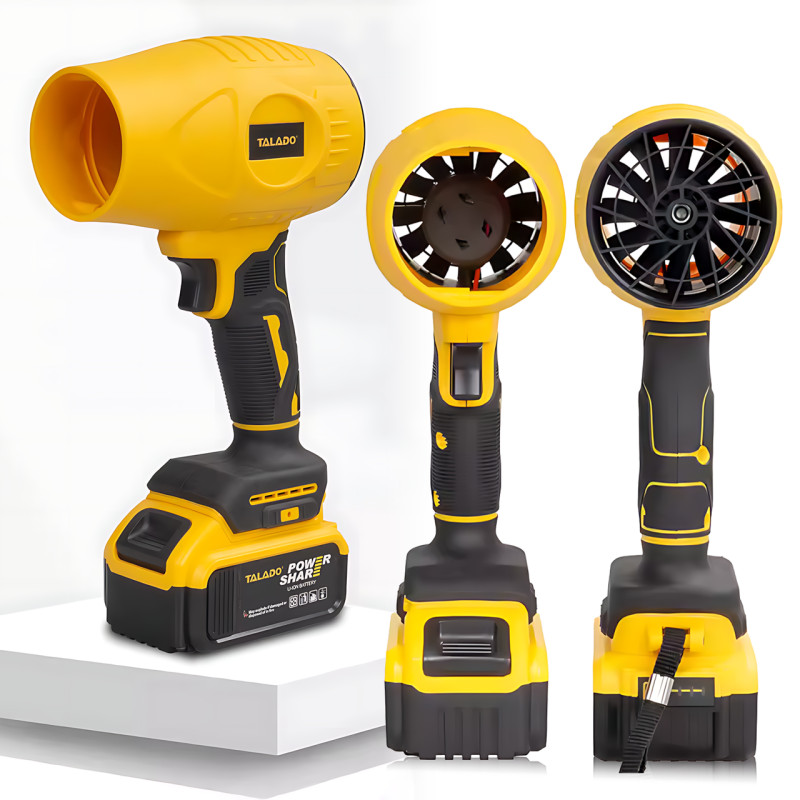 Бесщеточный аккумуляторный воздуходув TALADO ML-B003 21В, 28500 об/мин, 430 CFM, 60 см/с, литиевая батарея, 650 г, антискользящая ручка, чёрно-жёлтый