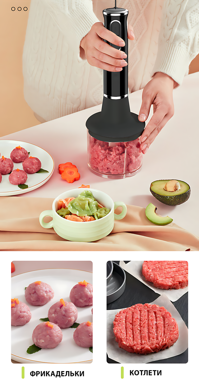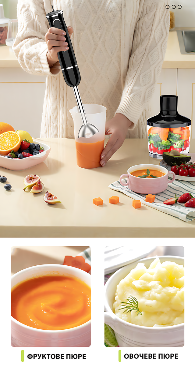идеально измельчает ингредиенты для любимых блюд - от детского питания до соусов для взрослых гурманов.