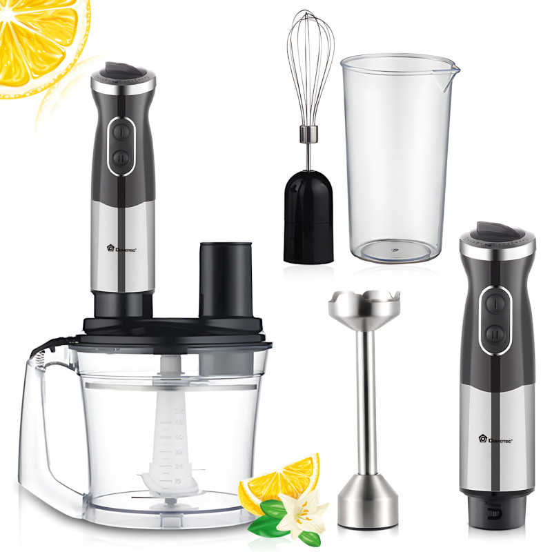 Domotec MS 5106 — это мощный и удобный стационарный блендер, созданный для ежедневного использования на кухне. Его двигатель мощностью 800 Вт легко справляется с измельчением, смешиванием/приготовлением пюре. Вместительная стеклянная чаша на 1,5 литра подходит для коктейлей, супов-пюре, соусов/смузи.