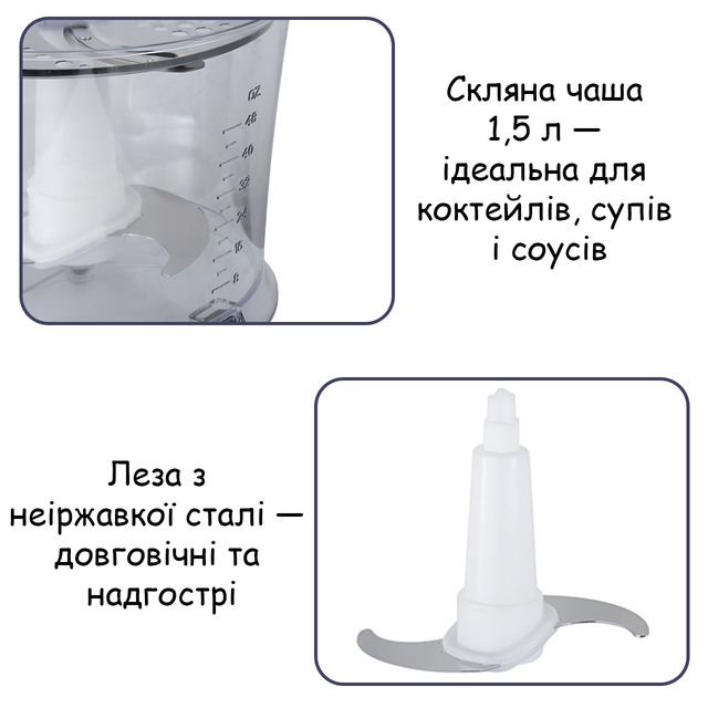 - ⚡ Мощность 800 Вт — быстрое измельчение и смешивание.