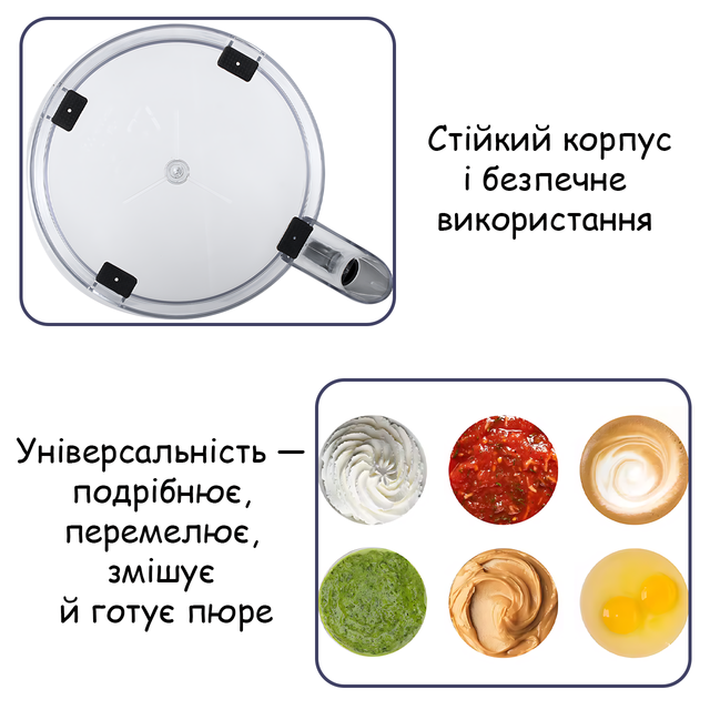 - 🎯 Универсальность — измельчает, перемалывает, смешивает и готовит пюре.