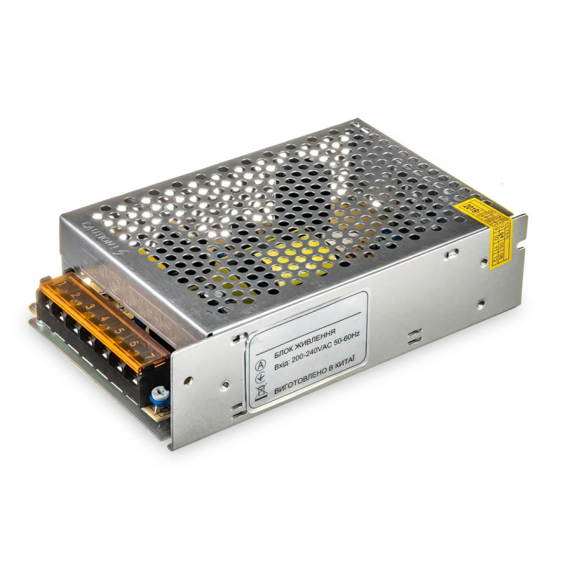 - Блок питания имеет мощность 120 Вт и стабилизированное выходное напряжение 12 В постоянного тока с подстроечным резистором +-1.5 В;