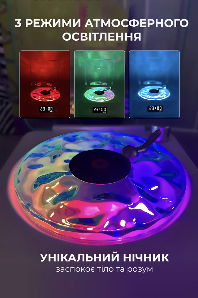 Bluetooth колонка-ночник Vinil Waves (zar88) с эффектом морской глади, генератором белого шума, часами и ретро дизайном + акб