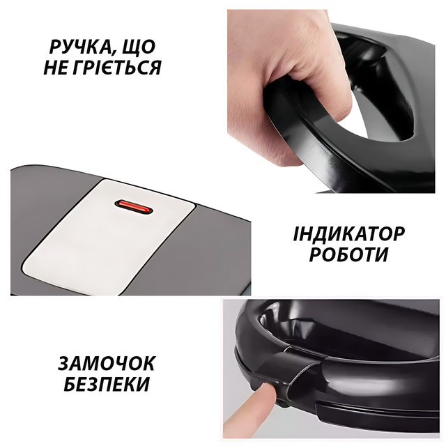 Бутербродница-сэндвичница Hoffmans HM-3003, 1000 Вт, антипригарное покрытие, индикатор работы и нагрева