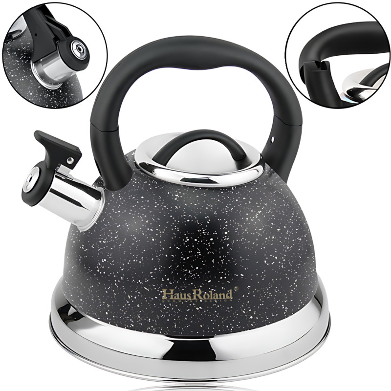 Чайник с гранитным покрытием 3.5 л zepline HR 774-1, со свистком и складной ручкой, черный