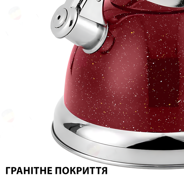 Чайник со свистком 3,5 л Zepline ZP-021, нержавеющая сталь с гранитным покрытием, красный