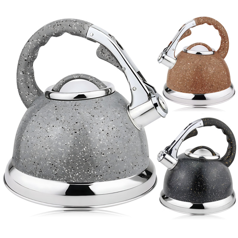 Чайник Zepline HR 704-5 со свистком, 3.5 л, нержавеющая сталь, гранитное покрытие, бакелитовая ручка, многослойное дно, для всех типов плит