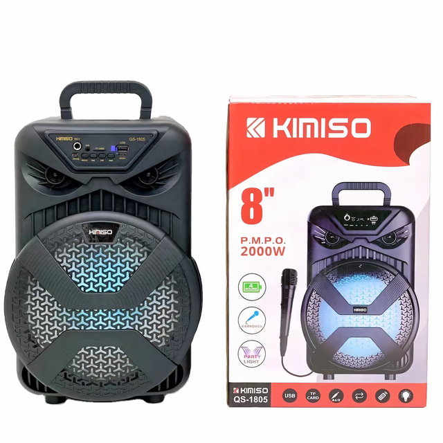 Колонка Kimiso QS-1805 8 дюймов с микрофоном и светомузыкой станет идеальным выбором для тех, кто ищет универсальное и качественное аудио оборудование для различных ситуаций.