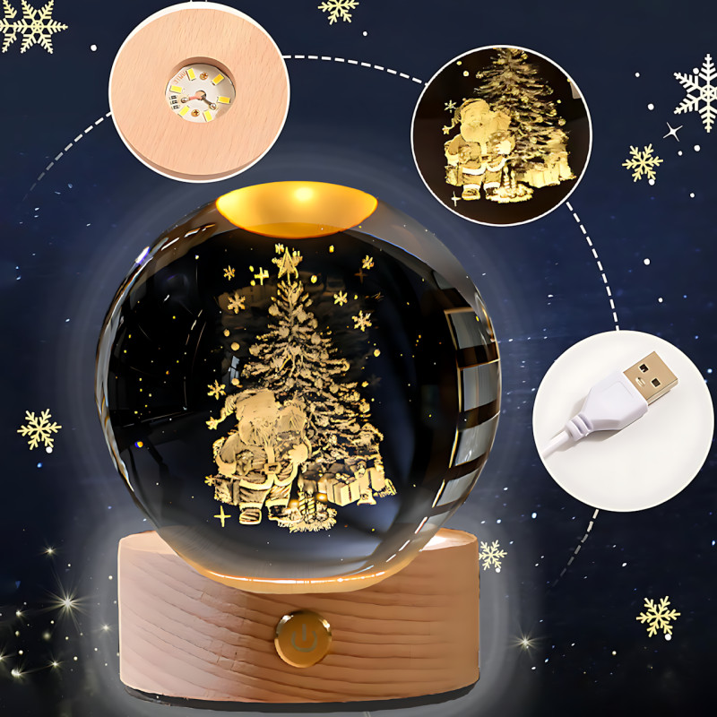 - Хрустальный шар-ночник с изображением Санта Клауса и праздничной ели;