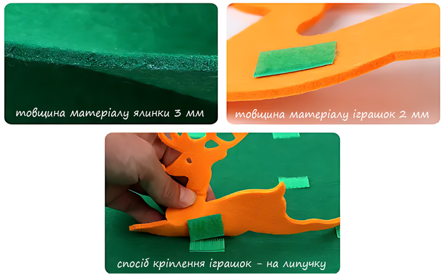 Игрушки на липучке можно разместить в любом порядке, что позволяет ребенку проявлять креативность, а родители могут использовать процесс украшения елки для обучения цветам и формам. Это поможет малышу развить внимание и наблюдательность.