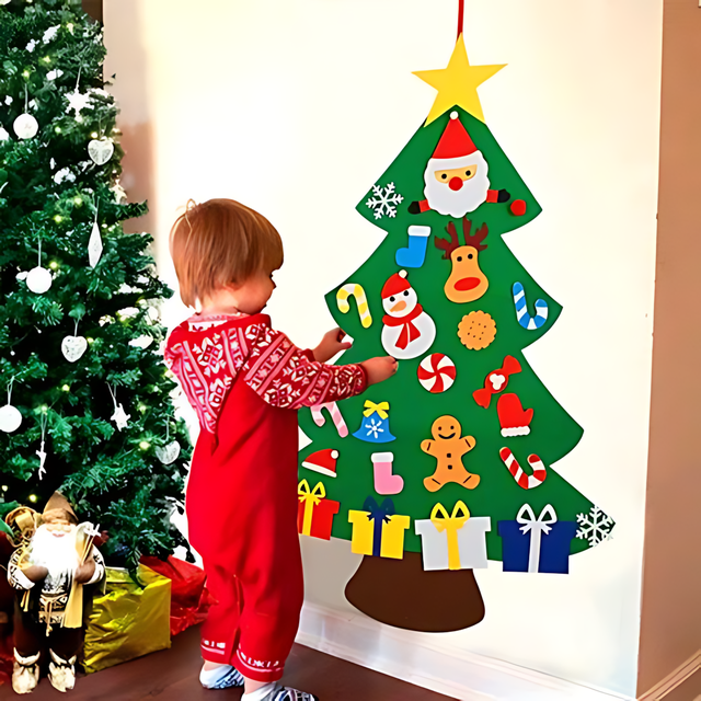 Эта елочка — идеальный аксессуар для создания праздничного настроения в доме. Она выполнена из экологически чистого фетра, безопасного для детей, и комплектуется 27 мягкими игрушками, которые можно легко прикреплять и перемещать благодаря липучкам. Елка поможет ребенку развить мелкую моторику и внимание, а также стать частью семейных традиций в украшении дома.