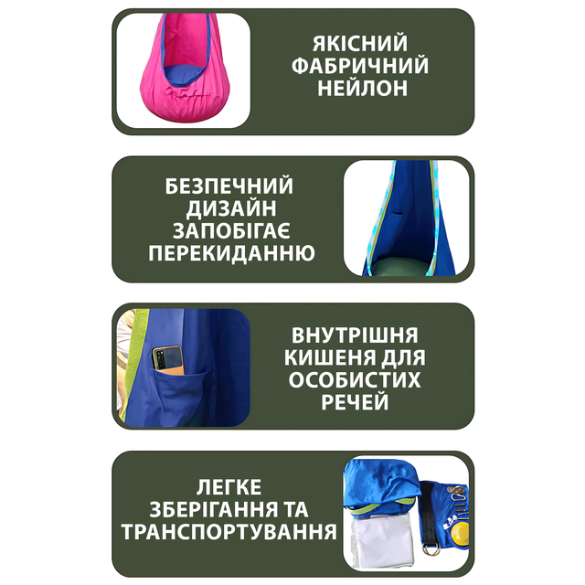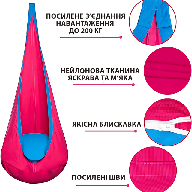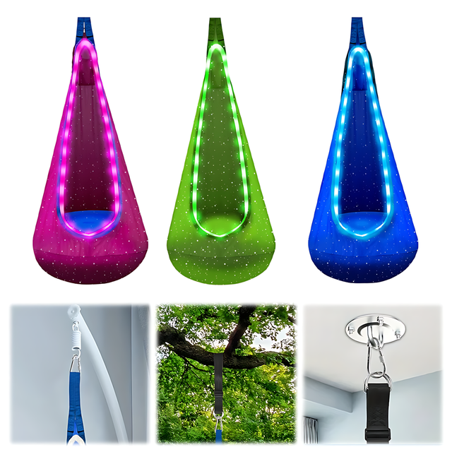 Детское подвесное кресло-груша с LED подсветкой, для дома и улицы, съёмная подушка, 3 цвета: синий, зелёный, розовый, до 200 кг