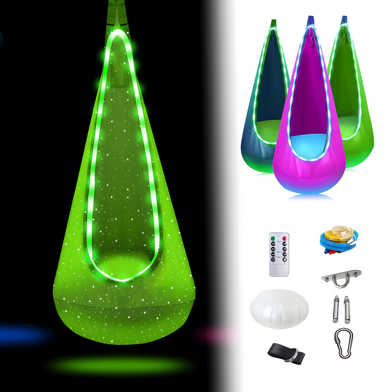 Детское подвесное кресло-груша с LED подсветкой, для дома и улицы, съёмная подушка, 3 цвета, до 200 кг Зеленый