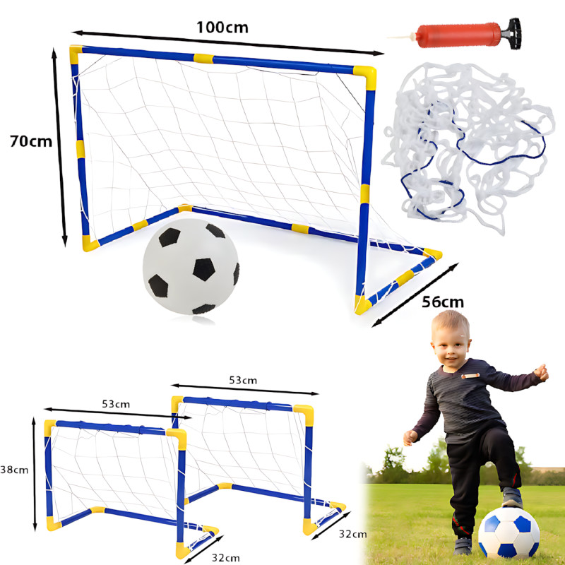 Детские футбольные ворота 2 в 1 с мячом, насосом, регулировкой высоты 100х70х55 см или 2 шт 55х40х40 см