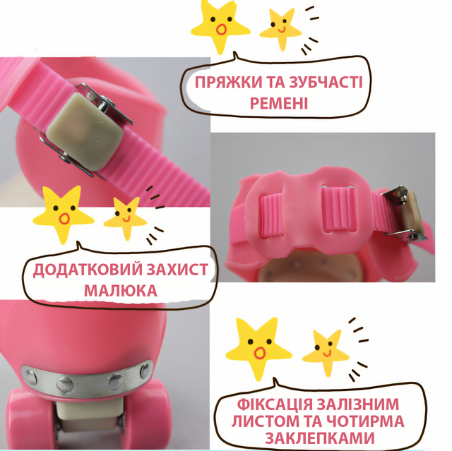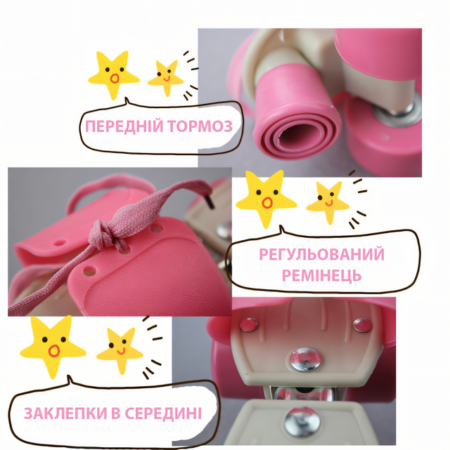 Детские квады Baby Quad, раздвижные ролики на обувь, размер 26-29, колеса PU, до 60 кг, передний тормоз Розовый
