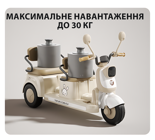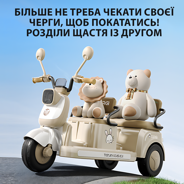 Детский электроскутер CORGI RideTwin 3-х колёсный, двухместный, с АКБ 6V 7AH, светом и музыкой, до 30 кг