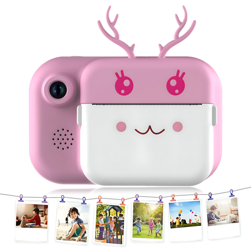 Детский фотоаппарат C11 "Рожки" с экраном моментальной печати черно-белых фото, с 3 играми