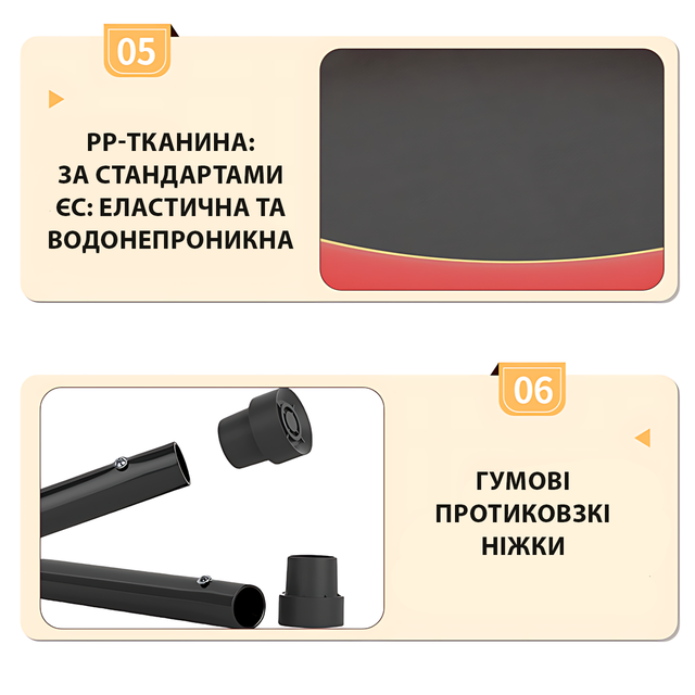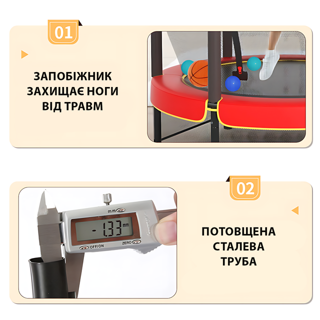 - 6 устойчивых стоек с внешней защитной сеткой — никакого "выскочил случайно"